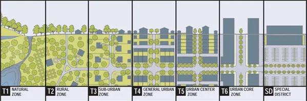 In terms of diversity, again, it is precisely the absence of planning that causes diversity to disappear. What we see in conventional practice is a development community completely split into developers who only do multifamily housing and developers who only do single family housing -- some developers seem to do one house over and over again. There are developers who only strip centers, developers who only do big boxes. There are vast areas of single use featuring no diversity at all and an enforced economic segregation between housing plots of different incomes.