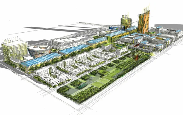 Repurposing more than 480 acres of an old naval base, the new Treasure Island redevelopment project will feature a 60-story tower and buildings housing 15,000 people, a mix of condos and affordable housing opportunities, bioswales of wetlands, some 300 acres of parks and public spaces, along with an integrated system to protect against sea level rise. The project was one of the select few identified as a "climate positive" model for sustainable urban development by the Clinton Climate Initiative. How will the project achieve climate positive standards?