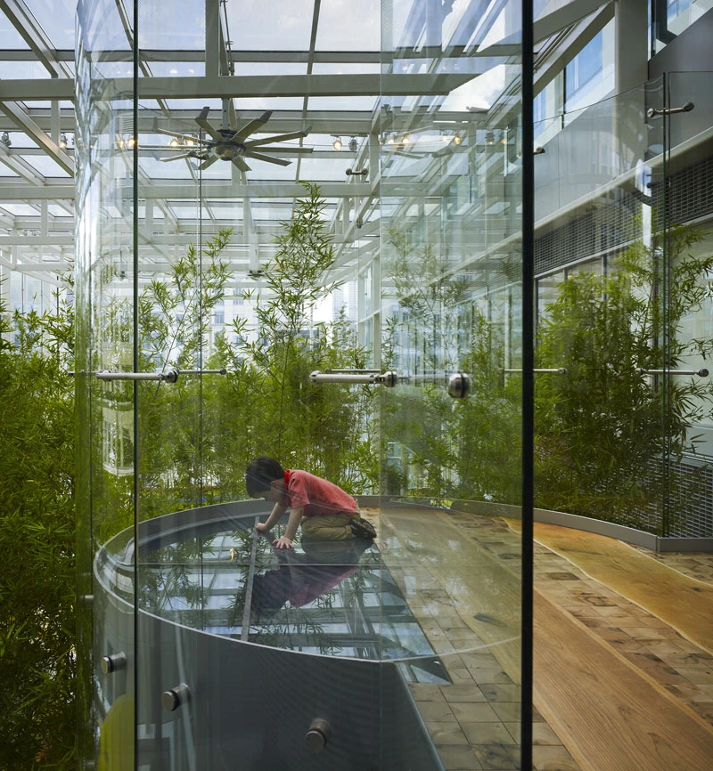 You brought nature play indoors, too, at the Crown Sky Garden at the Ann & Robert H. Lurie Children’s Hospital in Chicago. You transformed 11,000 square feet space on their 11th floor into an interactive engaging healing garden for ailing and recovering children and their families. The space is designed to offer access to light and plants, reduce stress and boost physical activity, while offering a safe space for children with compromised immune systems. How did you design the space to protect patients’ immune systems?