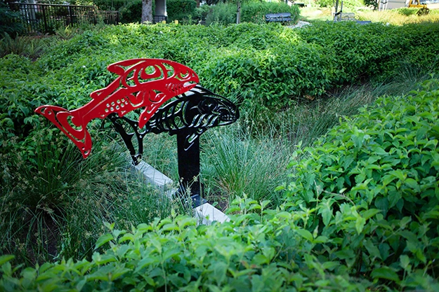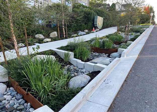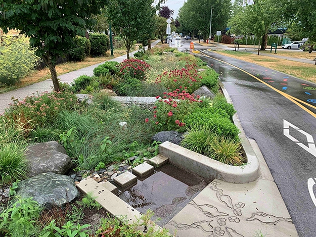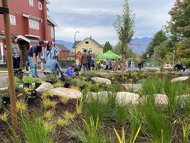 The St. George community rainway reopened a stream that was once channeled into a pipe, providing a new space for rainwater to flow. The new infrastructure was planted with Indigenous plants for pollinators, and the community supported its construction and on-going maintenance. "These new green features improve livability; they are important to communities." And the investments also support the goals of the city's 2050 plan and VanPlay, its parks master plan.