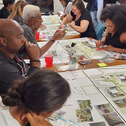 I think it made sense to start with a focus on landscape architecture and environmental planning, and to build some capacity and depth to be able to communicate to communities what we can do, because we're still unknown by a lot of communities, I think. That work will continue. But the nature of the problems we're facing are so complicated—it's beyond the purview of a single profession. This isn't rocket science. Since the mid-20th century, we’ve had Hideo Sasaki and other folks saying, “We can't just have a bunch of landscape architects in here, we got to have environmental professionals and specialists.” I think with environmental justice, it's those professions but it's also a lot of social science expertise. So eventually, I'm hoping to bring public health expertise into the lab. My hope for the future is to create some space to enable public health to be equal to the landscape architecture component, so we can continue building meaningful relationships. Right now, we work with those fields in partnership. But I think it would be a different dynamic if projects were approached holistically with those perspectives.